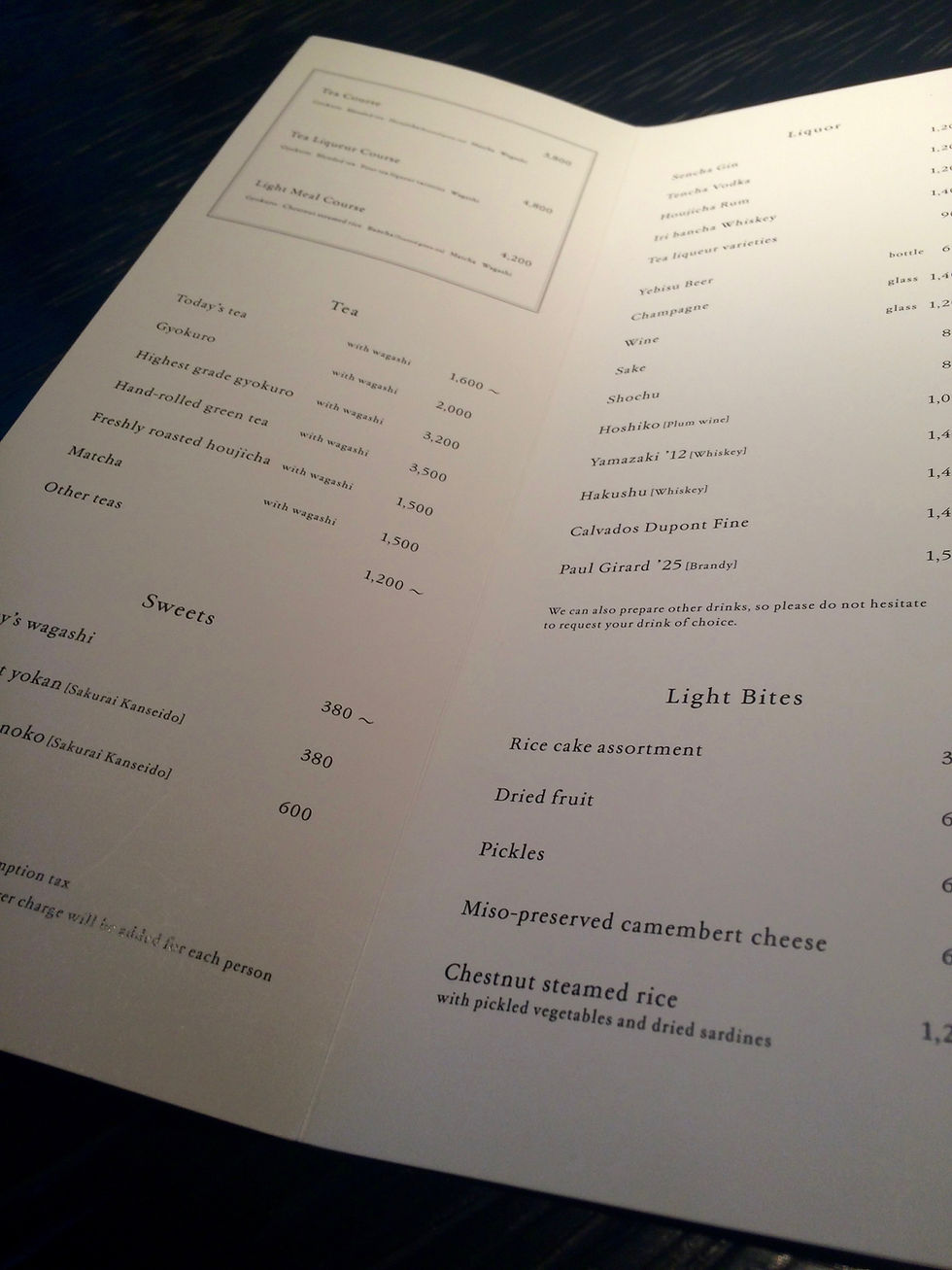 We spent roughly one and a half hours at Sakurai and barely spoke to one another. I had Gyokuro, my travel companions had a Sencha and a Matcha, each tea course come with a wagashi (I will talk a bit more about these teas in a later post). It felt greedy and sacrilegious when we shared, but we did it anyways. The wagashi was beautiful and the tea handled in methodic courses. I experienced flavors from green tea that tasted like fresh seafood - umami and vegetal, drastically transformed with every infusion. Sakurai took apart the architectural structure and formality of steps between tea maker and tea drinker that you would normally see in a traditional tea ceremony set up. In its place they filled that empty space with imbued stoicism that leads to awe from focused simplicity on tea.